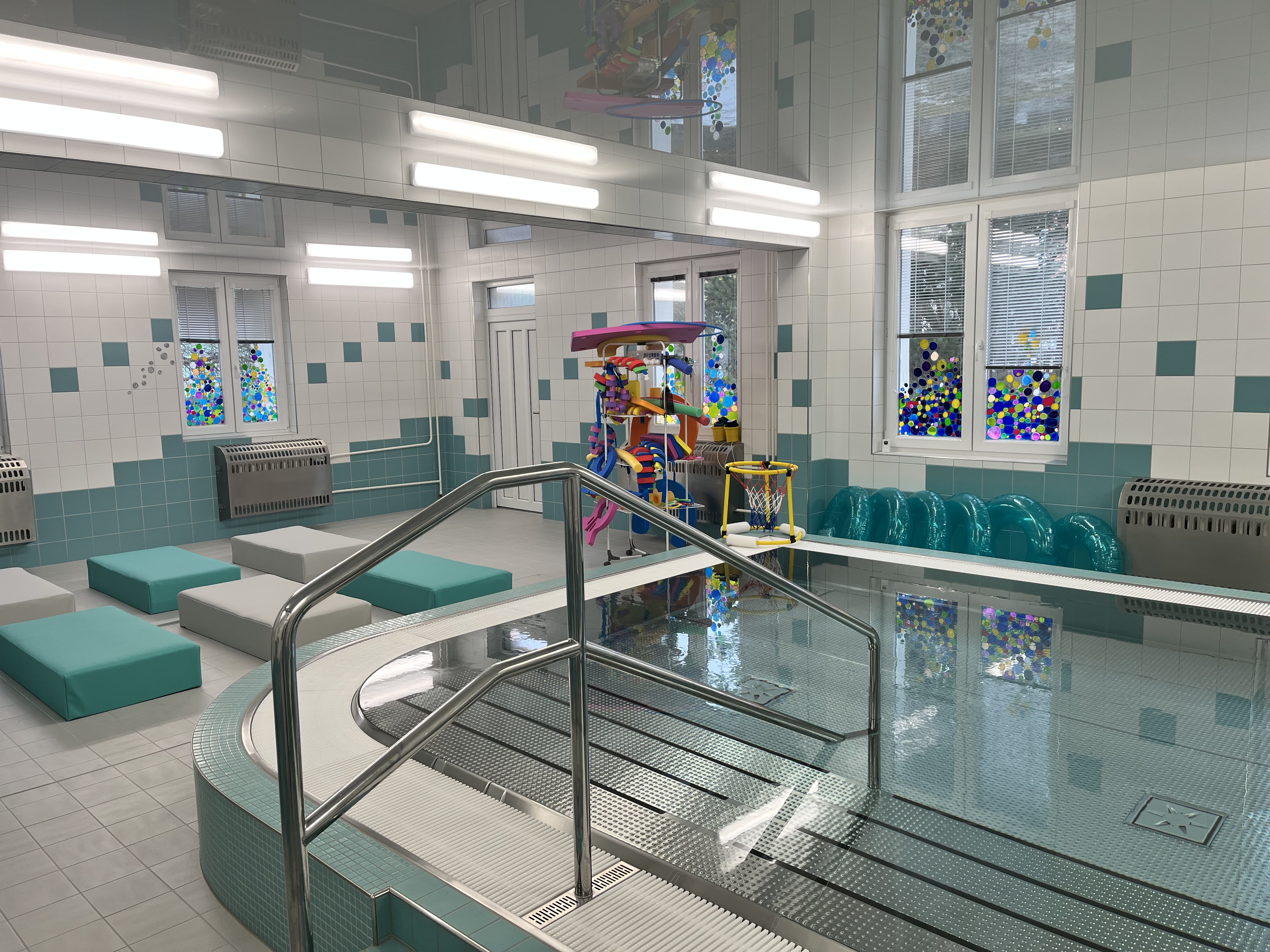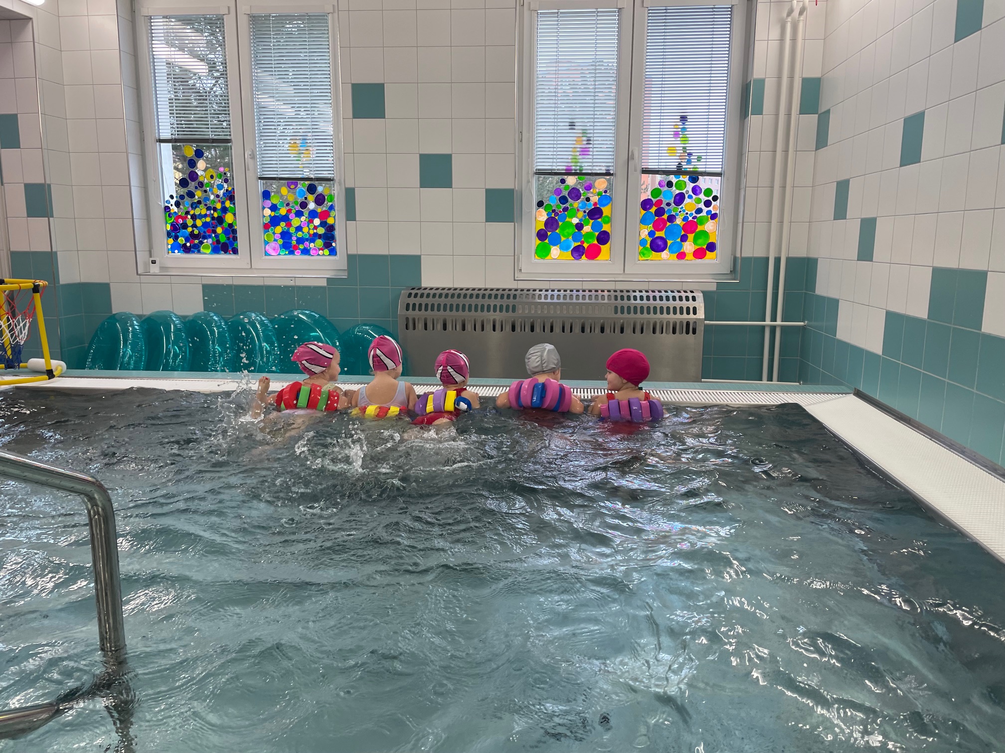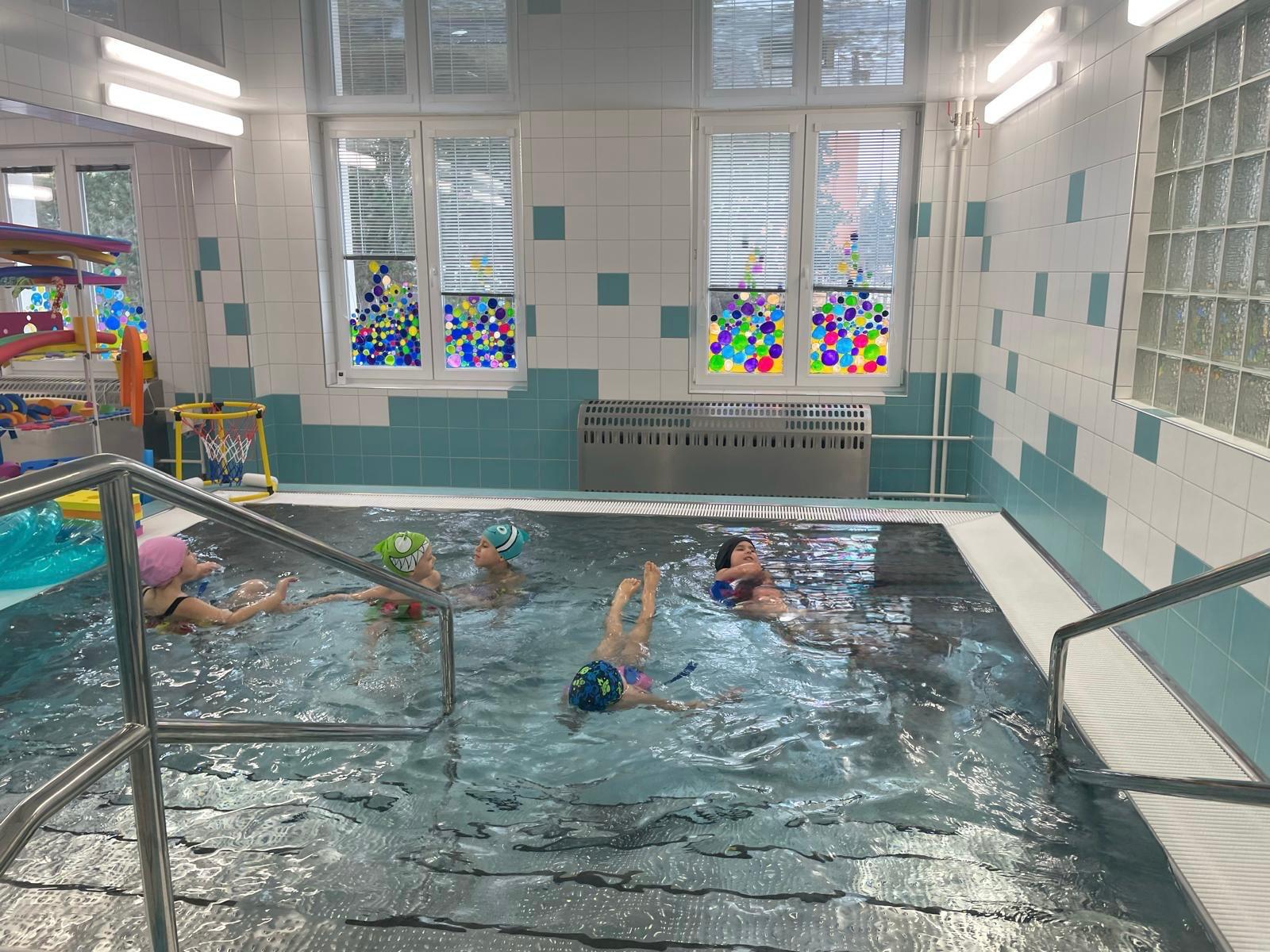 Bazén je součástí filozofie naší školy, která klade důraz na zdraví a pohyb. Lekce jsou součástí našeho ŠVP a podporují celkovou tělesnou, psychickou a sociální pohodu dětí.