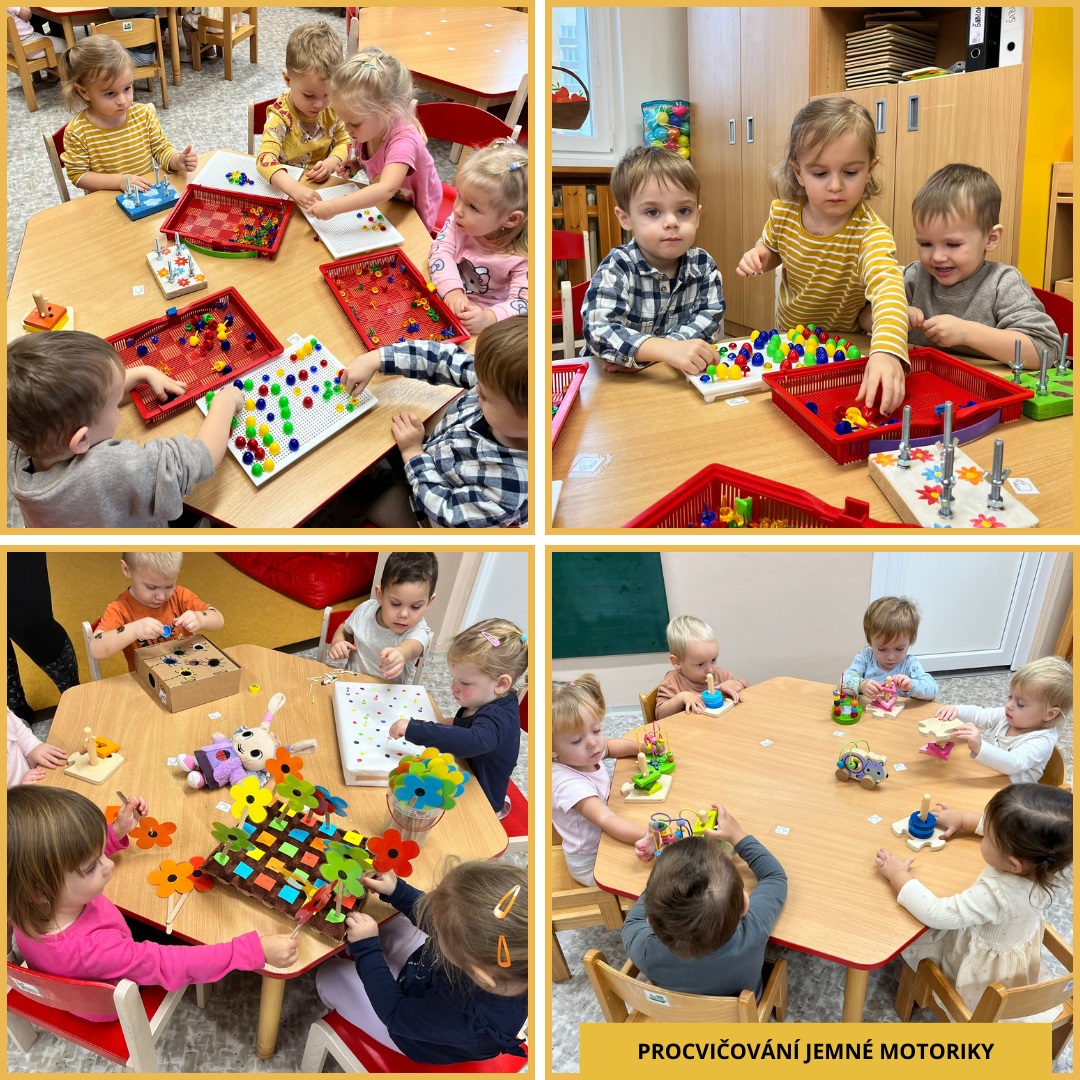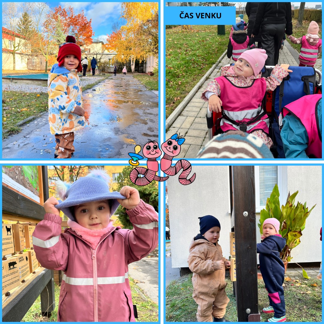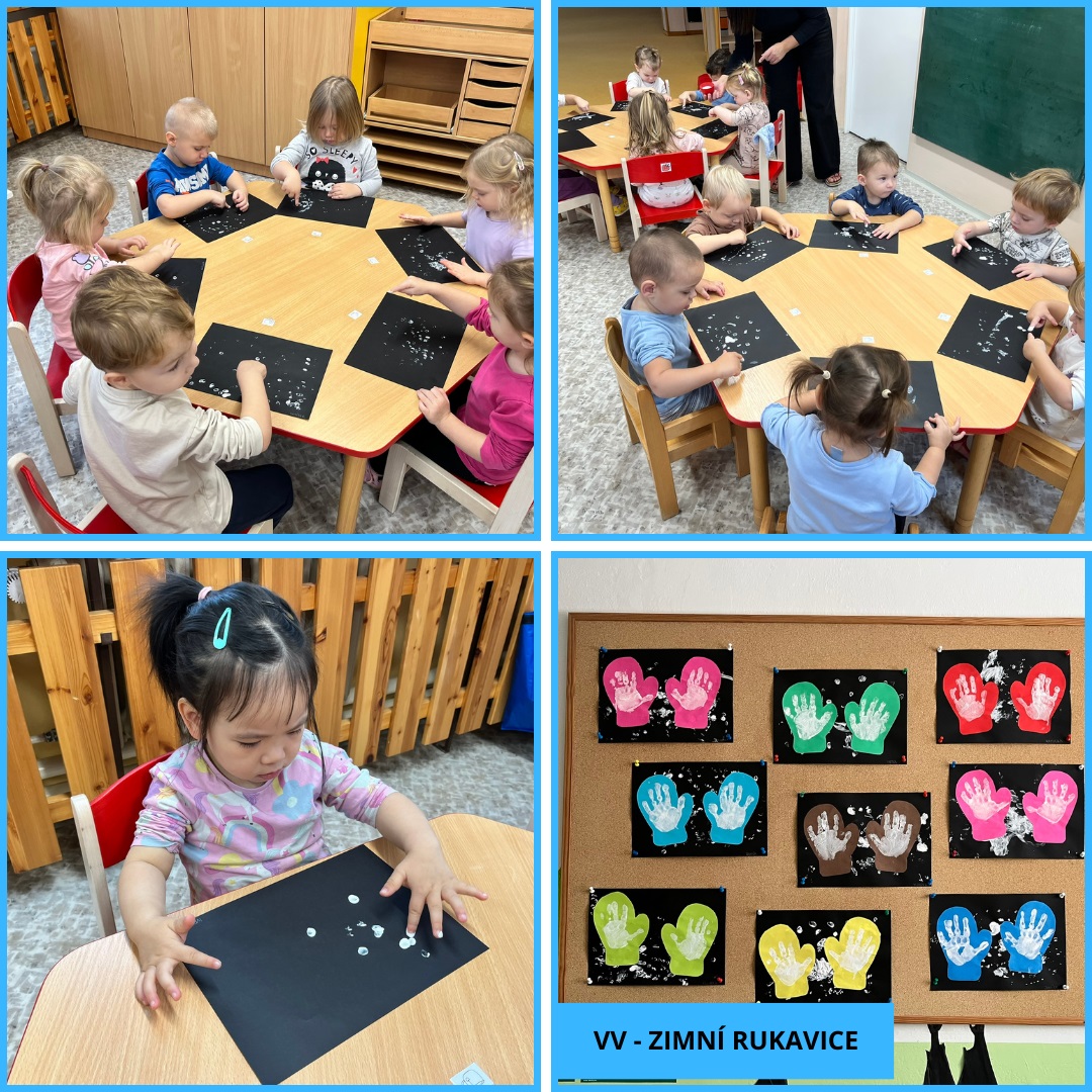 Během uplynulého měsíce jsme s dětmi prožili pestrý program plný tvoření, her i společného povídání. V rámci podzimního tématu „Podzim všemi smysly“ si děti vyzkoušely tiskání rozpůleným jablíčkem a pomocí prstů vytvářely barevnou duhu. Postupně jsme se také začali připravovat na natáčení videa k vánoční besídce a společně jsme si užili veselý pyžamový den.