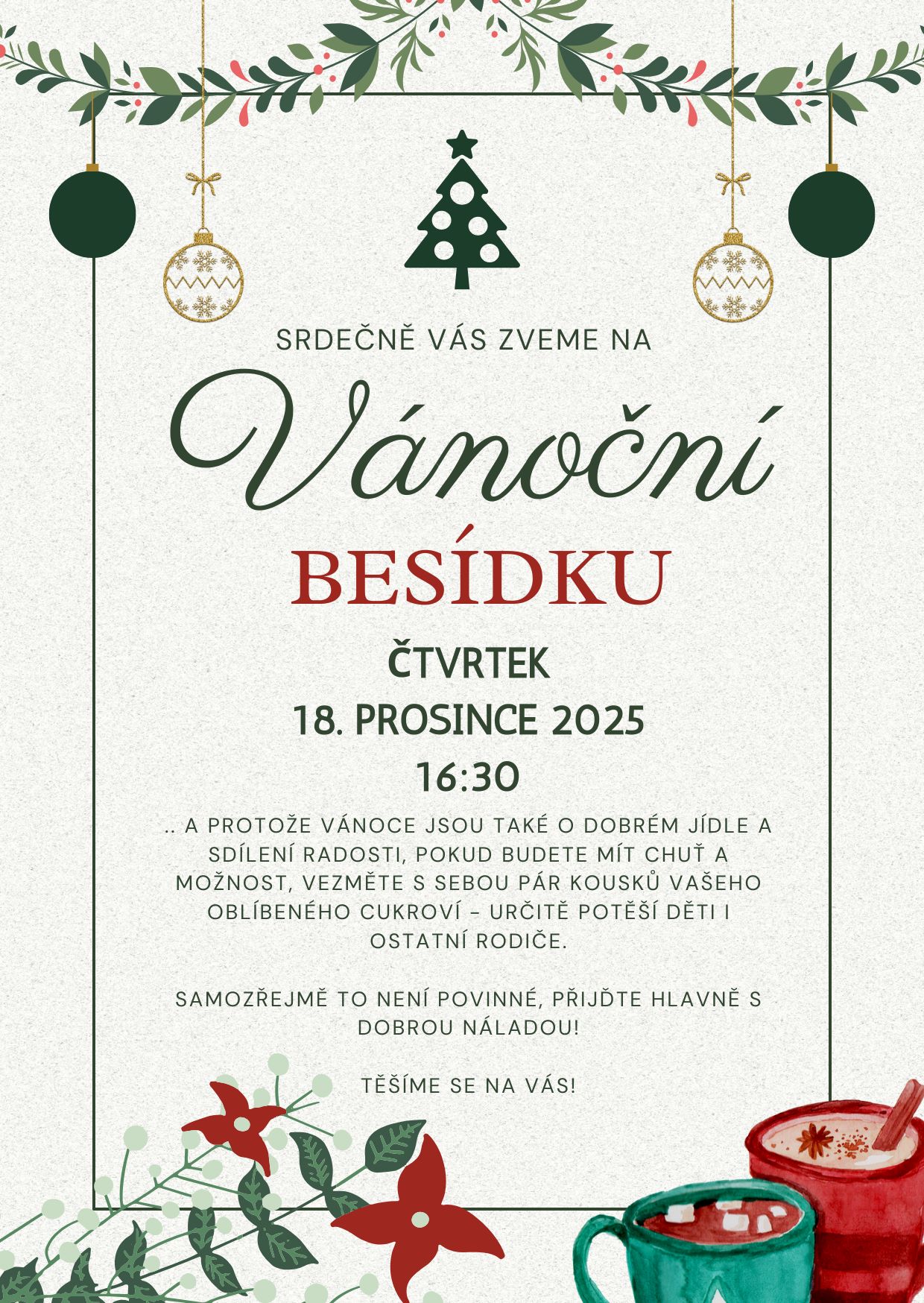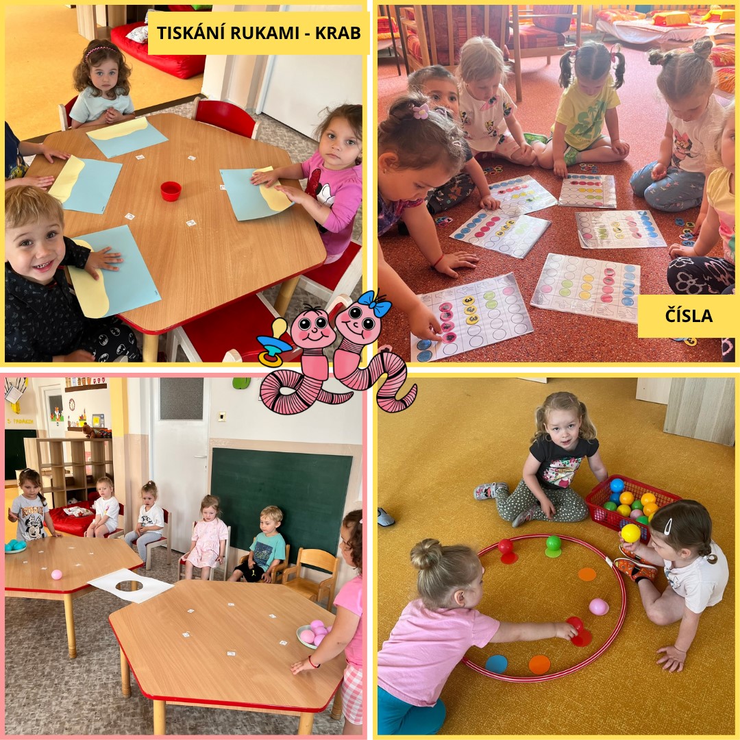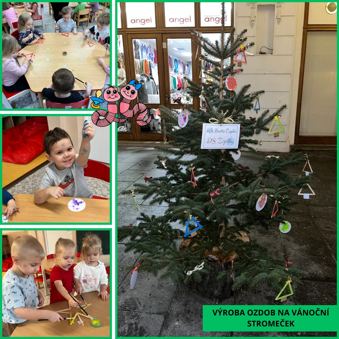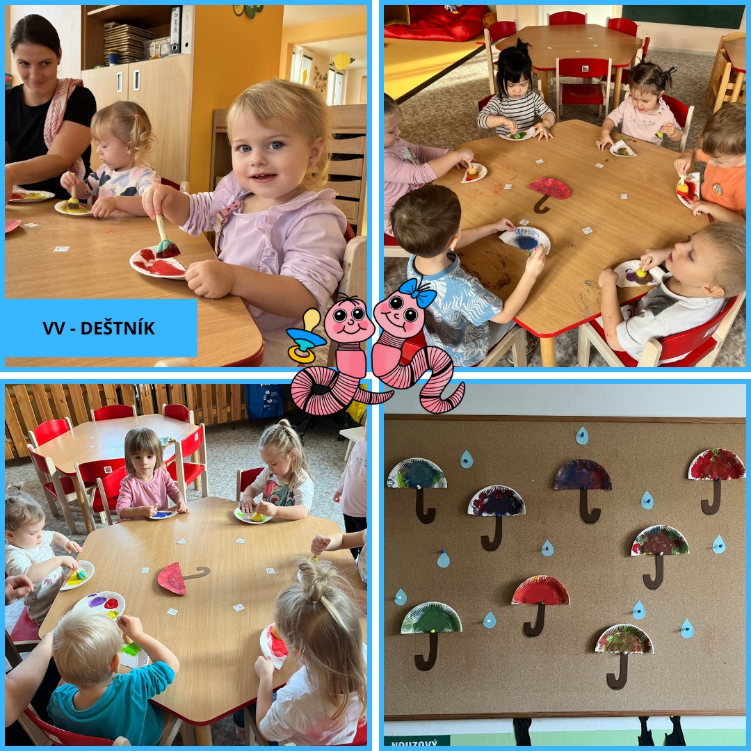 Během uplynulého měsíce jsme s dětmi prožili pestrý program plný tvoření, her i společného povídání. V rámci podzimního tématu „Podzim všemi smysly“ si děti vyzkoušely tiskání rozpůleným jablíčkem a pomocí prstů vytvářely barevnou duhu. Postupně jsme se také začali připravovat na natáčení videa k vánoční besídce a společně jsme si užili veselý pyžamový den.