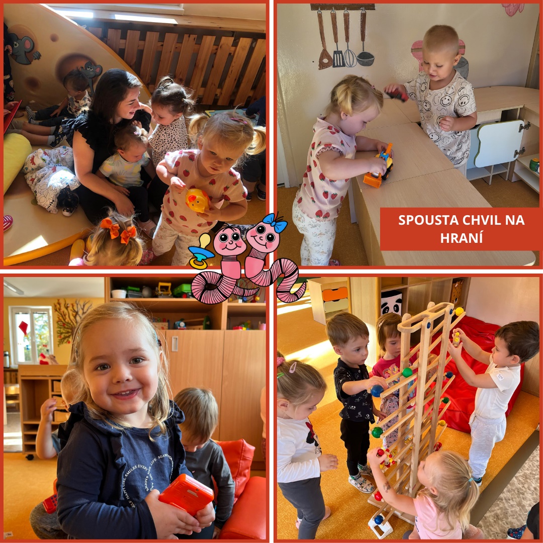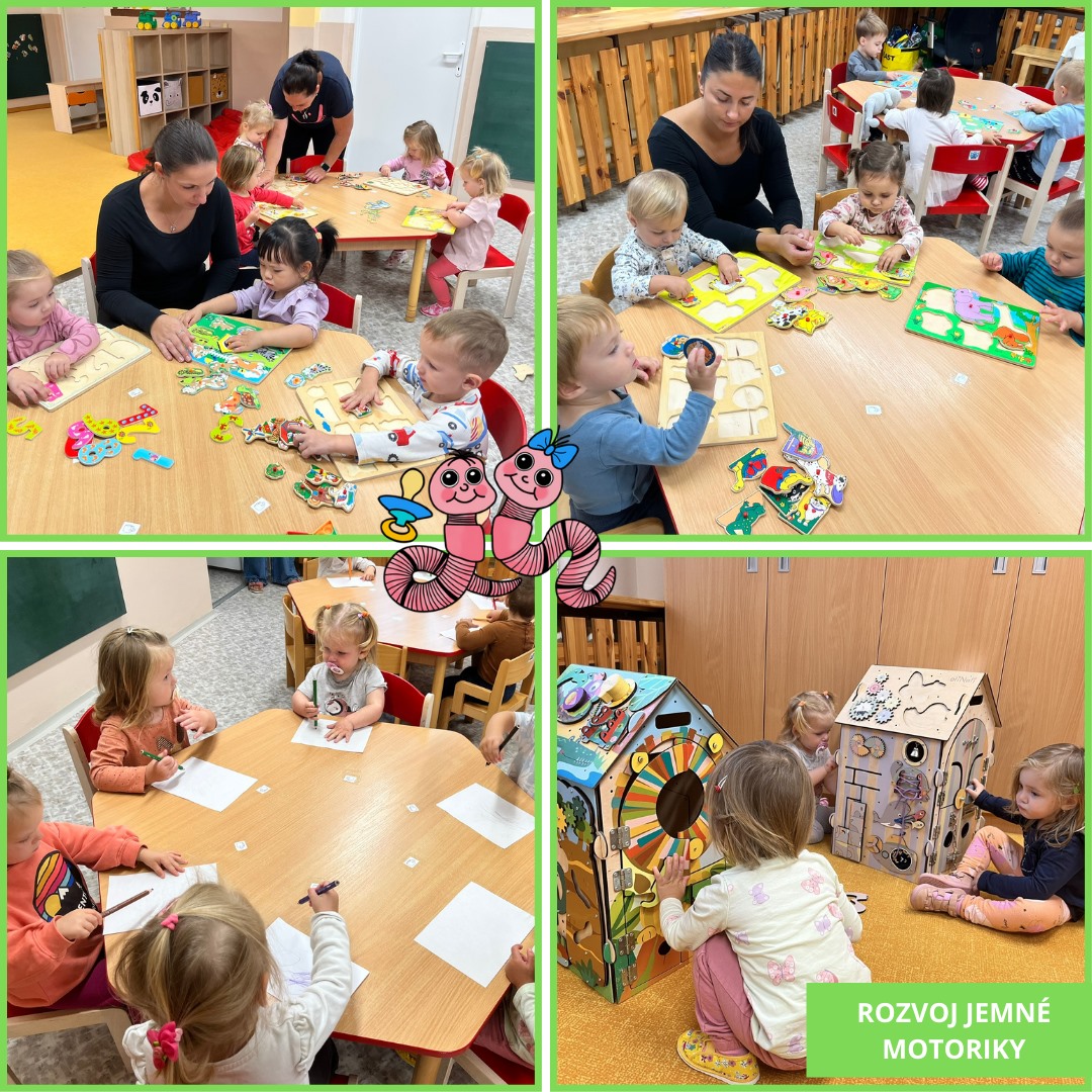V září jsme se věnovali adaptaci nových dětí ve skupině. Děti měly prostor pro volnou hru, aby mohly poznávat prostředí, seznamovat se s pečujícími osobami a budovat důvěru. Zároveň se učily poznávat nové kamarády, přizpůsobovat se dennímu režimu a postupně se zapojovat do společných aktivit. Adaptace probíhala hravě a bez stresu, s cílem, aby se děti cítily bezpečně a spokojeně.